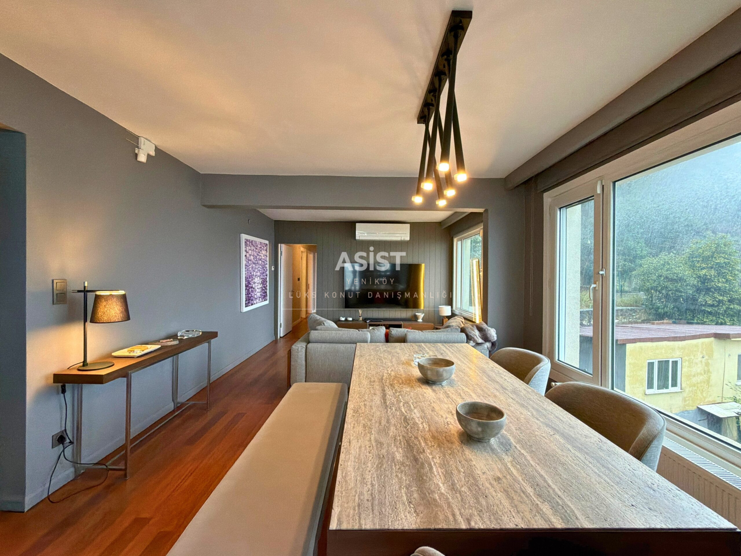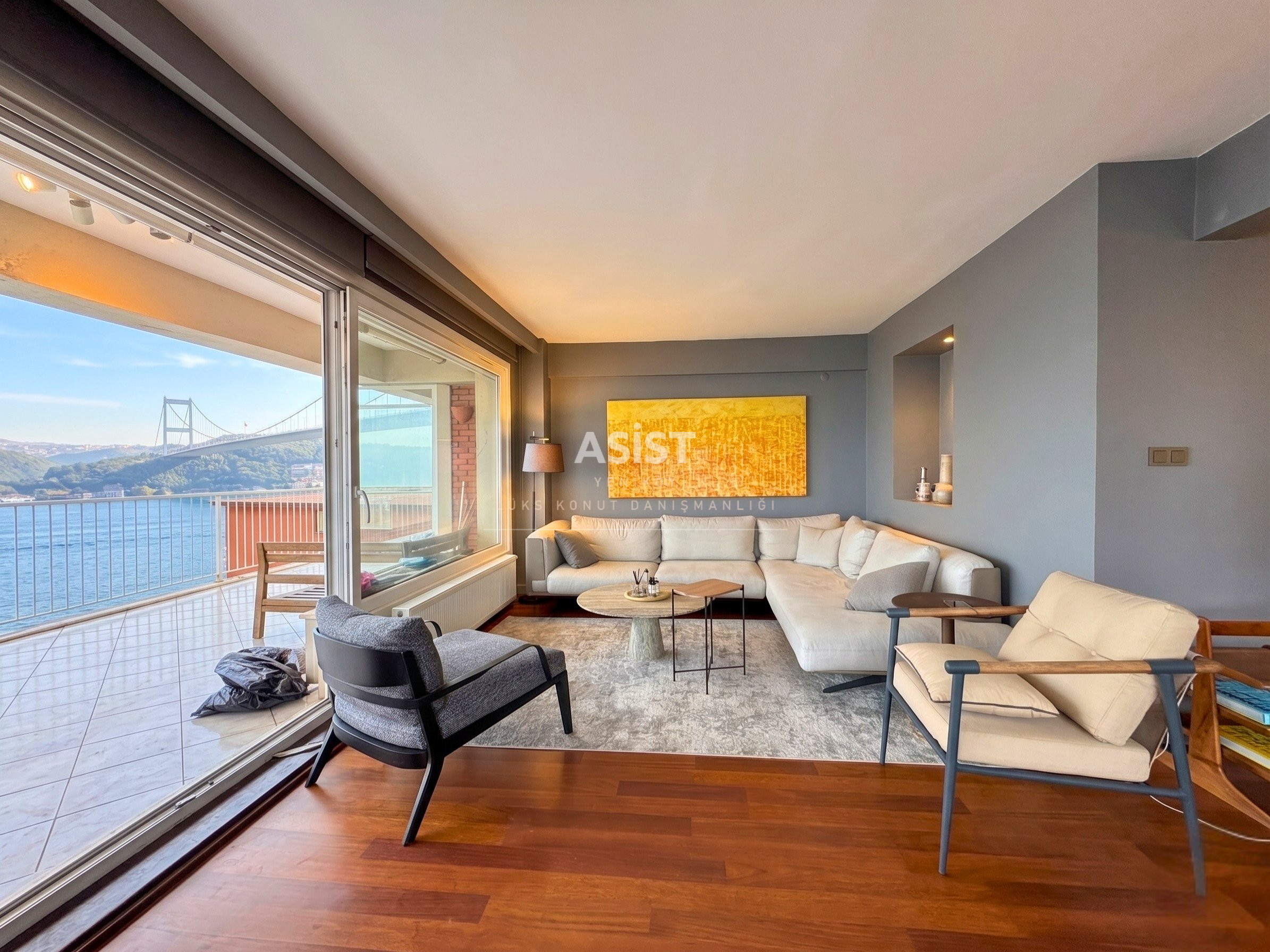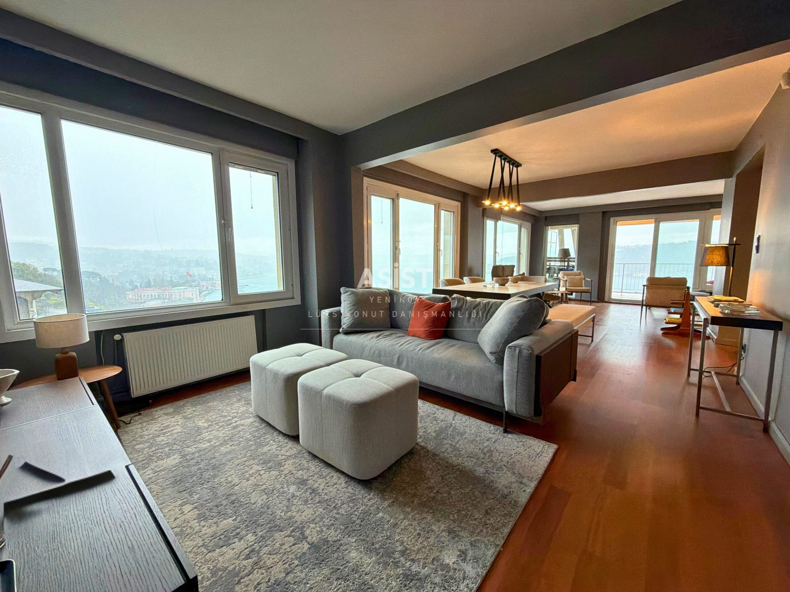 Boğaz’ı kuşbakışı izleyebileceğiniz, günün her saatinde farklı bir manzara sunan bu daire; özellikle geniş ve aydınlık 50 m² salonu ile hem konforlu bir yaşam hem de keyifli davetler için ideal bir ortam sunar.
